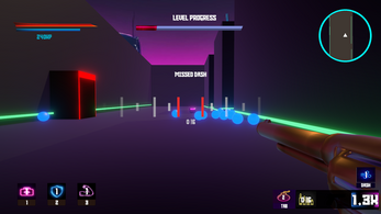 Shoot, Reload, Dash and Jump on beat to defeat the enemies